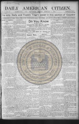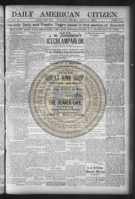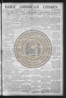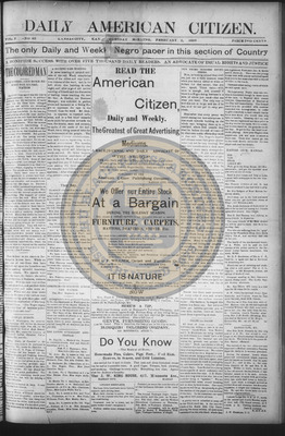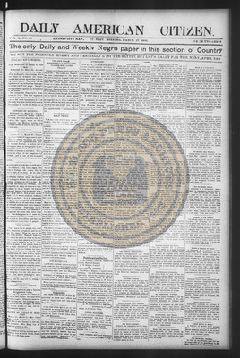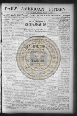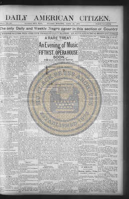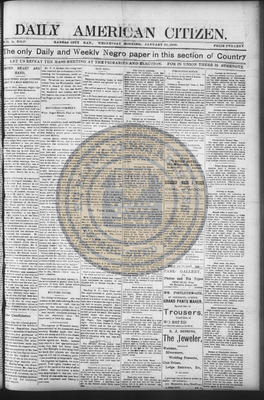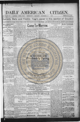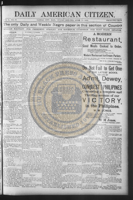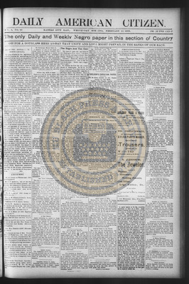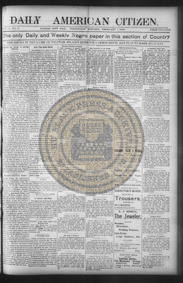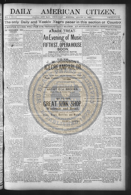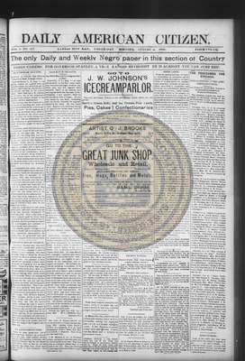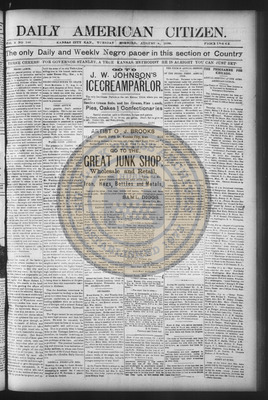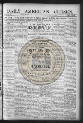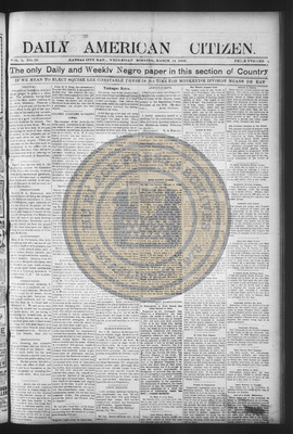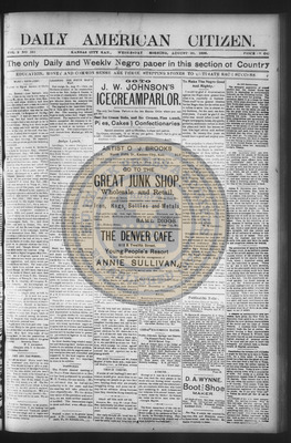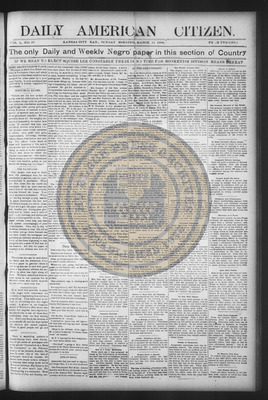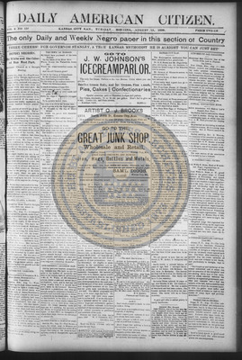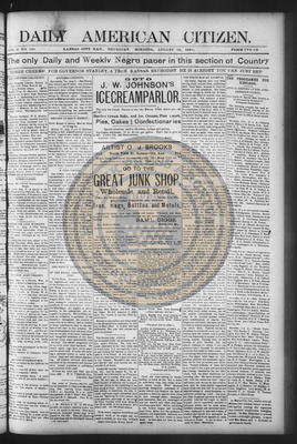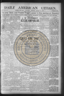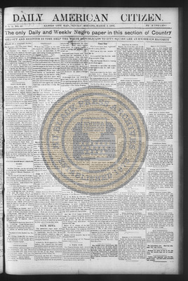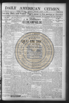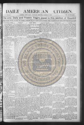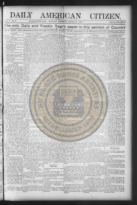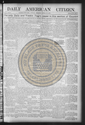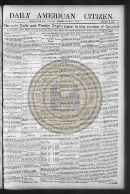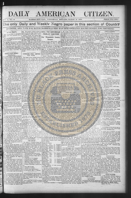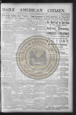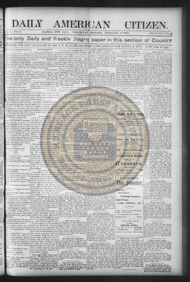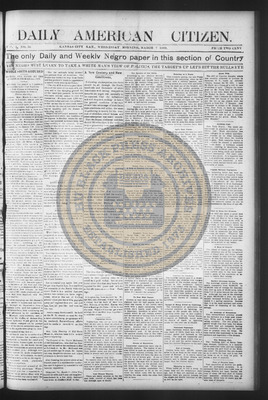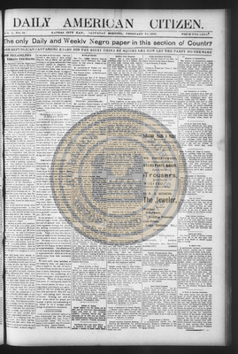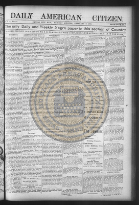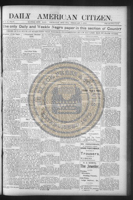 The Daily American Citizen was an African American daily newspaper published in Kansas City, Kansas, from roughly 1898 to 1900 (daily except Mondays). It grew out of The American Citizen press and aimed to provide regular coverage of news and issues important to the local Black community at the turn of the 20th century, reflecting the vibrant and often challenging landscape of Black journalism in Kansas during this era.