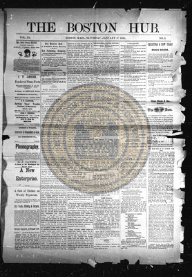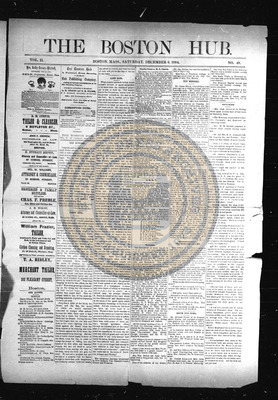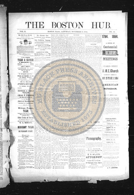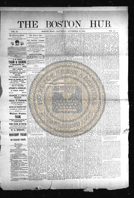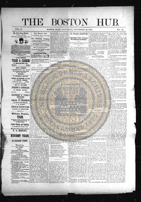 The Boston Hub was a newspaper published every Saturday in Boston, Massachusetts. The publication decided to pivot from its 2 prior names: The Hub and The Boston Weekly Hub to meet in the middle with The Boston Hub. Editors B.R. Wilson and A.H. Grimke remained in their positions and the Hub Publishing Company continued as publisher.