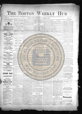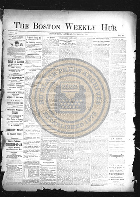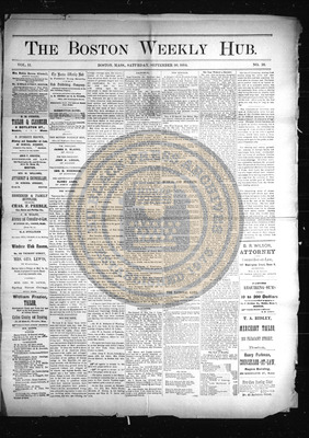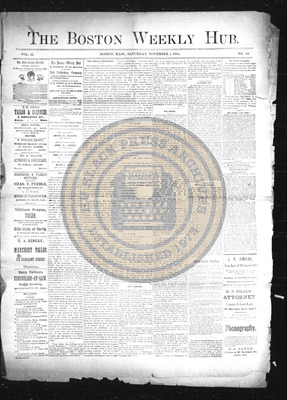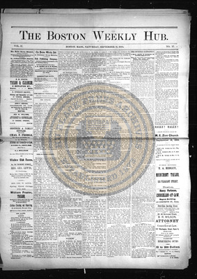 The Boston Weekly Hub was a newspaper published every Saturday in Boston, Massachusetts. The publication decided to pivot its name from The Hub to The Boston Weekly Hub and editor B.R. Wilson was joined by A.H. Grimke.