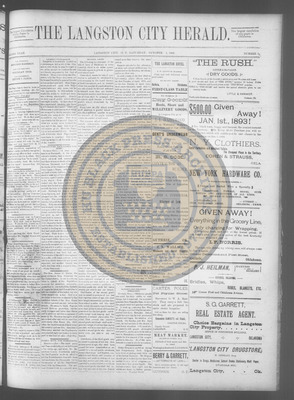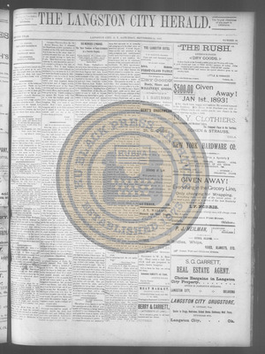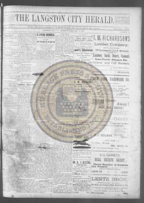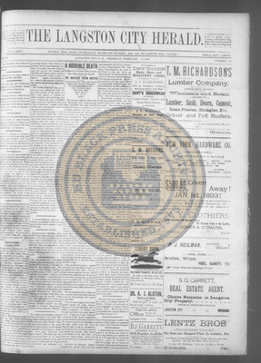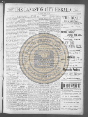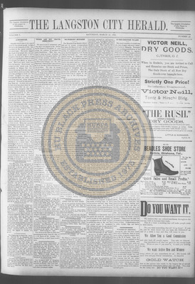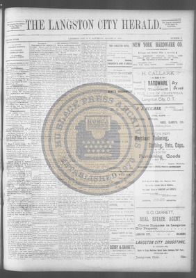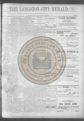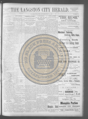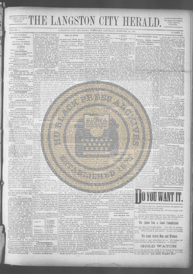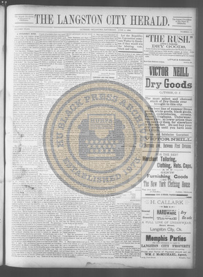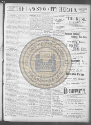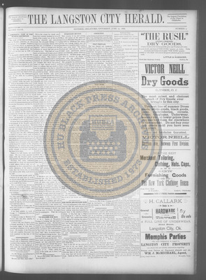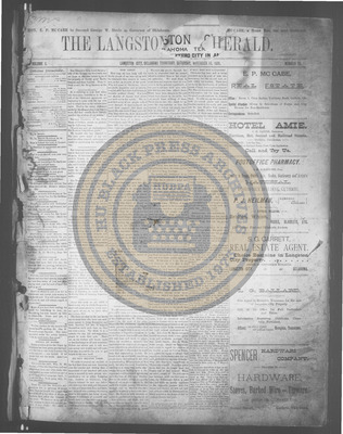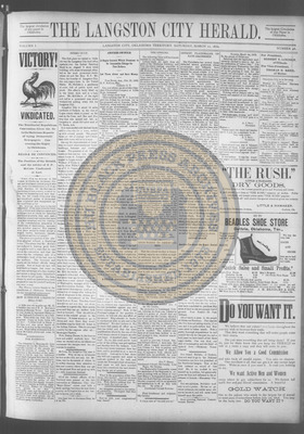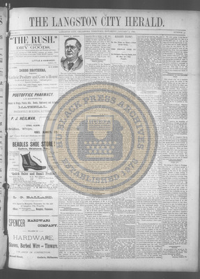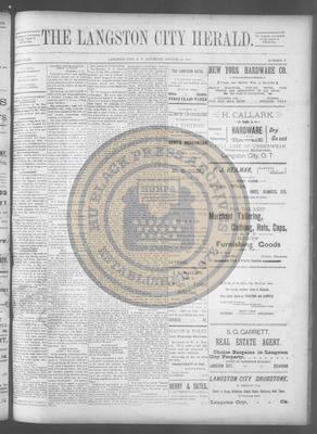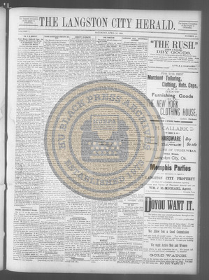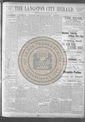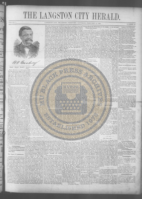 The Langston City Herald debuted on May 2, 1891, as the first weekly African-American newspaper in Oklahoma Territory. A paramount promoter of Black homesteading in the territory, it circulated throughout the South and Southeast. Its widespread readership was vital to the settlement of African- Americans in Oklahoma.