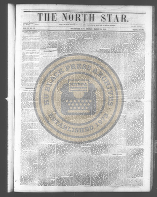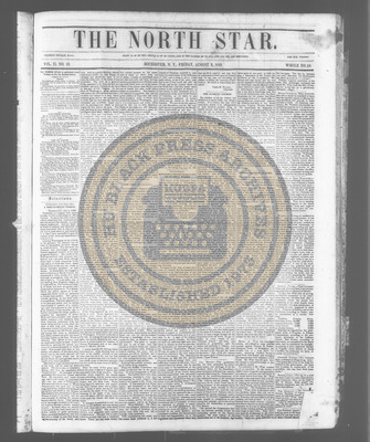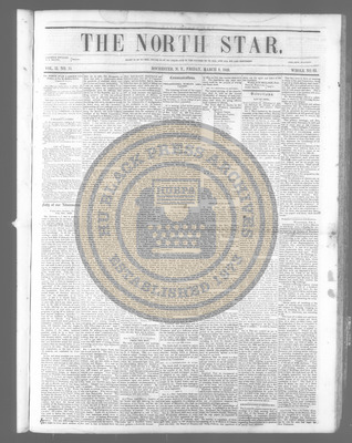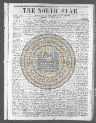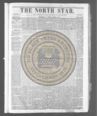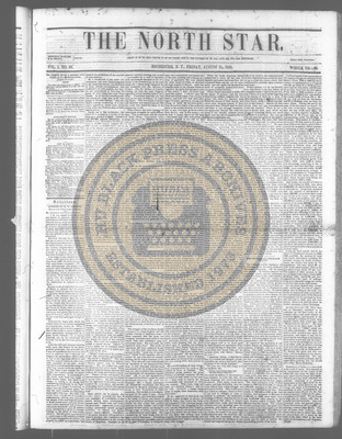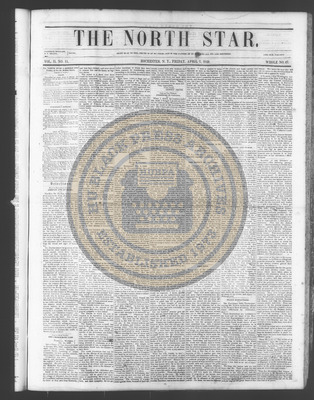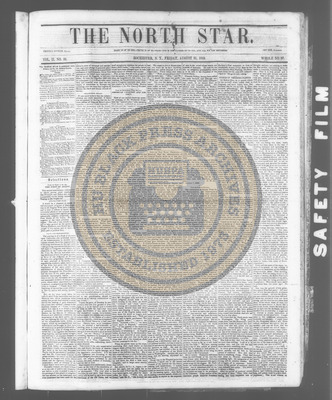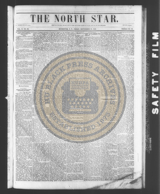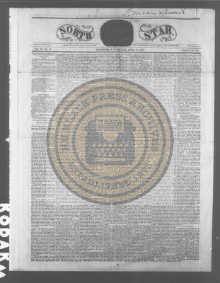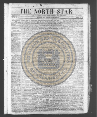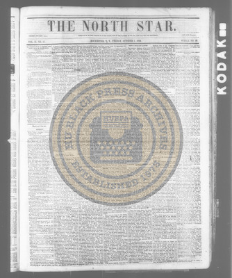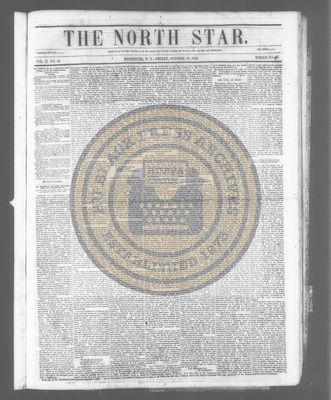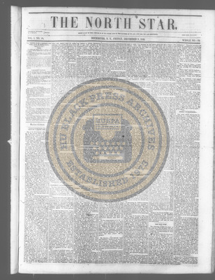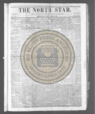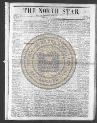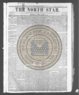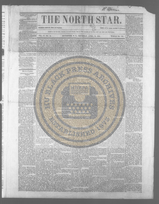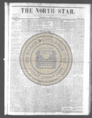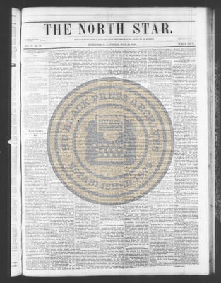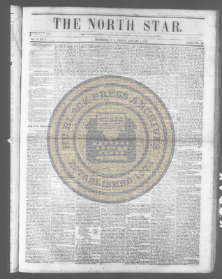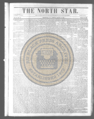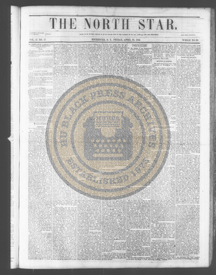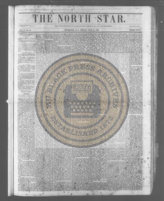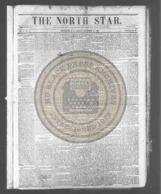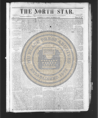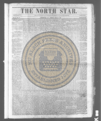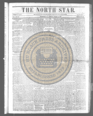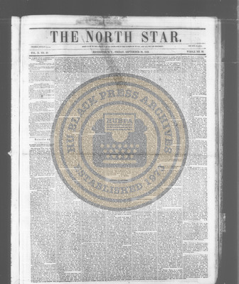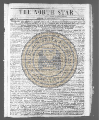 The North Star, first published on December 3, 1847, was a powerful antislavery newspaper founded by African American abolitionist Frederick Douglass. Funded by Douglass’s speaking tour in Britain and Ireland, the paper was based in Rochester, New York—a hub of abolitionist activity. Named for the celestial guide used by escaping slaves, The North Star quickly became one of the most influential Black publications of the pre-Civil War era. Its motto, “Right is of no sex—Truth is of no color—God is the Father of us all, and we are brethren,” reflected Douglass’s advocacy for racial and gender equality. With over 4,000 subscribers in the U.S., Europe, and the West Indies, the weekly four-page paper featured abolitionist news, editorials, reader letters, poetry, and commentary on injustice. Through it, Douglass passionately challenged America’s moral contradictions and called for equal rights and education for all.