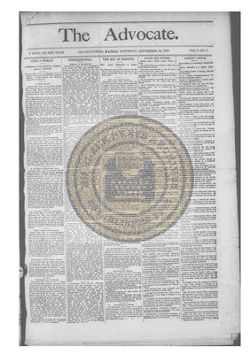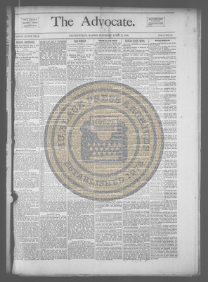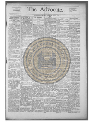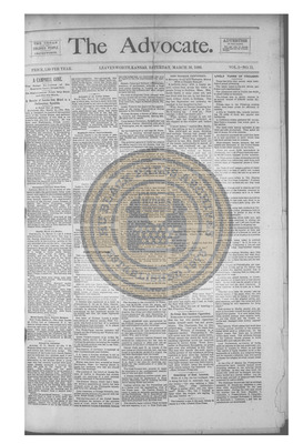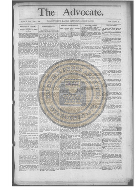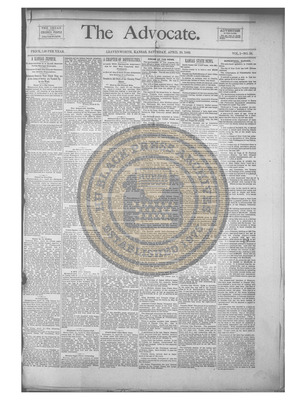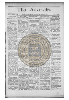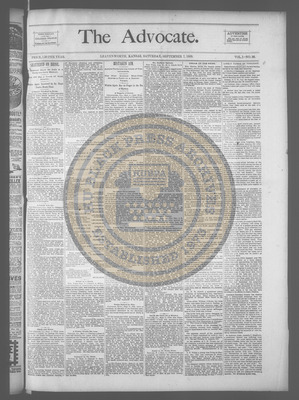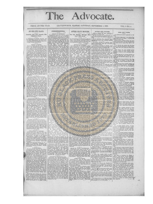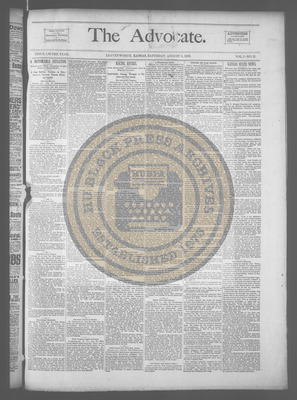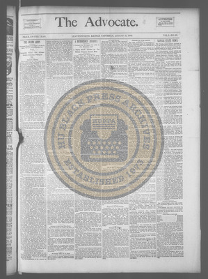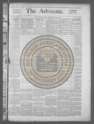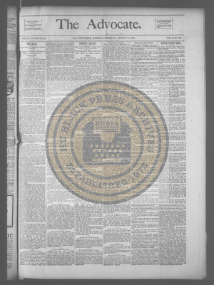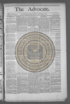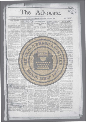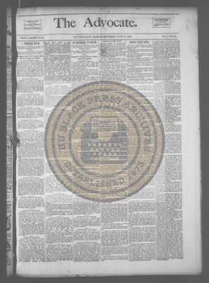 The Advocate was an African American weekly newspaper established in Leavenworth, Kansas, in 1888 under the editorship and publication of W. B. Townsend. As one of the earliest Black-owned papers in Kansas, The Advocate served as a prominent voice for the African American community, addressing issues of civil rights, political participation, education, and social advancement during the post-Reconstruction era.