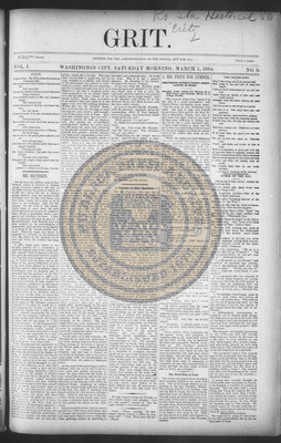 The Washington Grit was a short-lived 19th-century newspaper in Washington, D.C., founded in 1883 by editor and proprietor John Edward Bruce. It advocated Republican principles and took strong editorial positions in support of political reforms of the era. One of several publications led by its founder, the Grit reflected active civic engagement in post-Reconstruction politics.